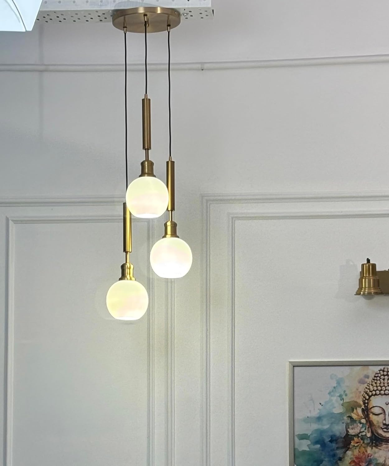Enhance the interiors of your space with this elegant Triple Glass Hanging Pendant Light. The lamp gives a stylish look to your space while adding a touch of grandeur. This lamp provides sufficient lighting to brighten the interiors of your room and delivers diffused illumination which sets the ambience and the mood of your space. It is made in our factory in India.